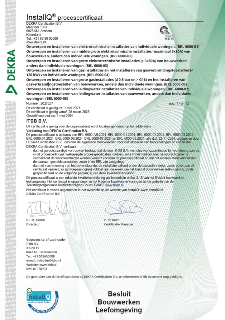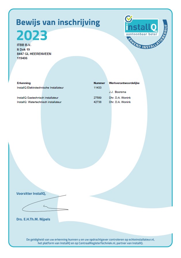 InstallQ Bewijs van inschrijving 2023 Elektro, Gas en Water