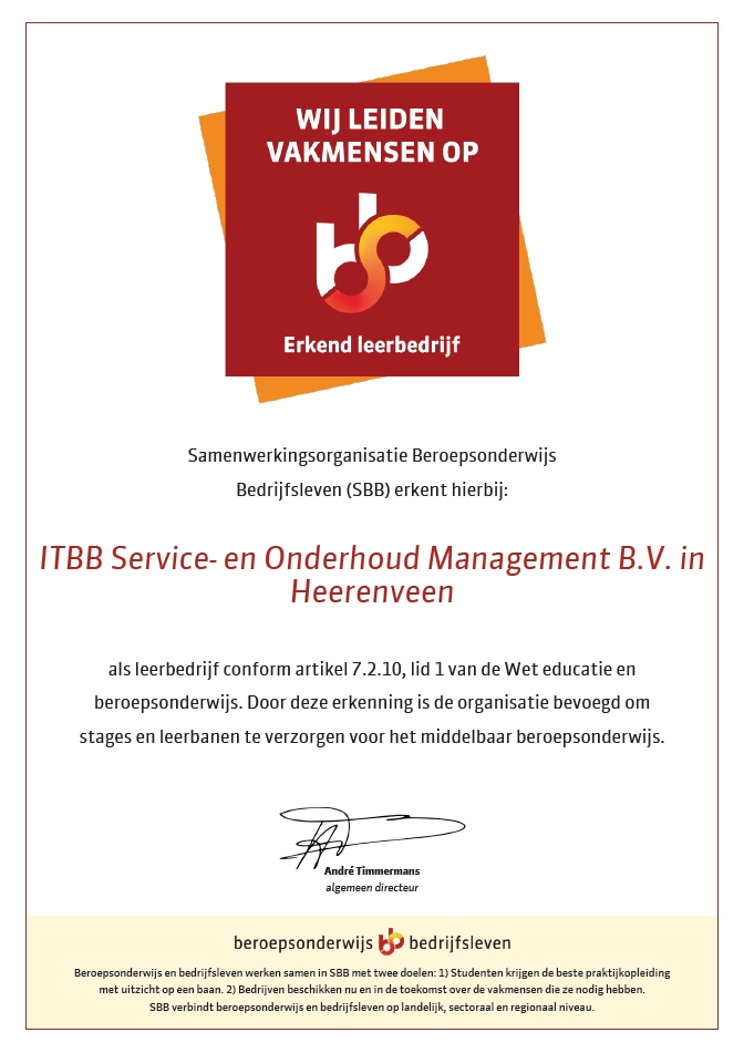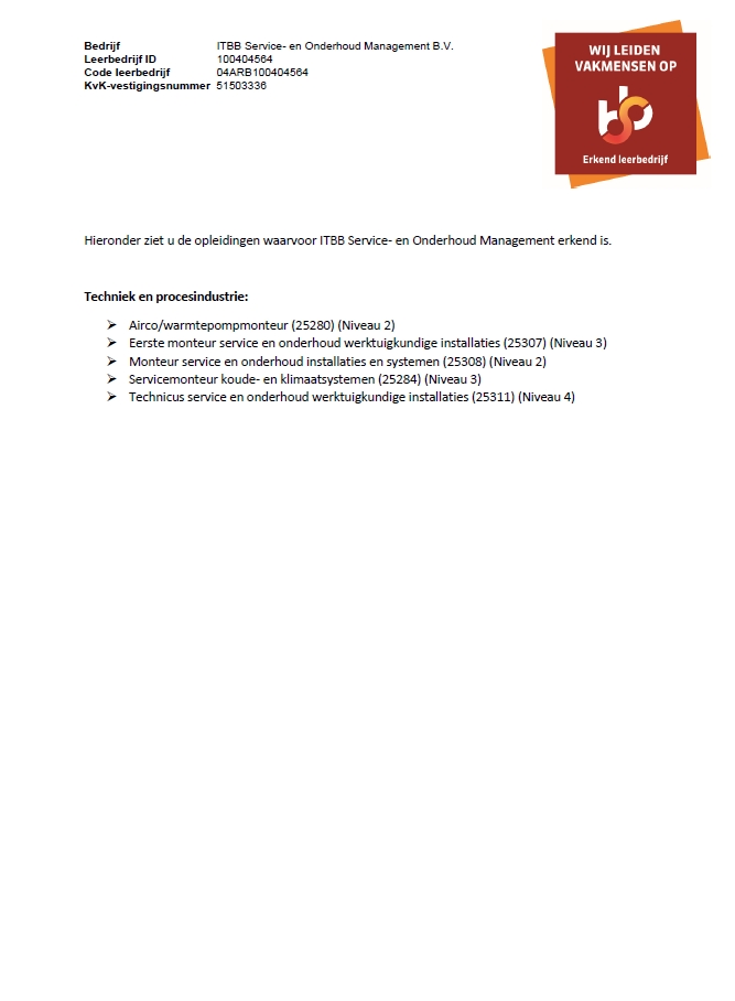 Erkenning ITBB Service- en onderhoud bv
